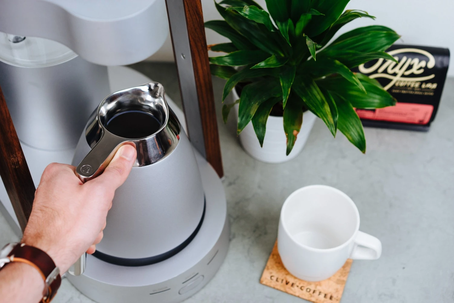 This carafe combines function, elegance, and durability. The insulated dewar body will keep your coffee hot for up to 4 hours after brewing. The 304 stainless steel handle and 18/8 stainless steel dewar body are very resistant to corrosive coffee acids and oils. The counterweighted handle makes pouring feel natural and well-balanced.