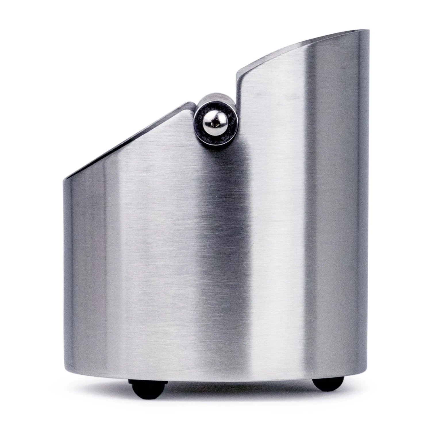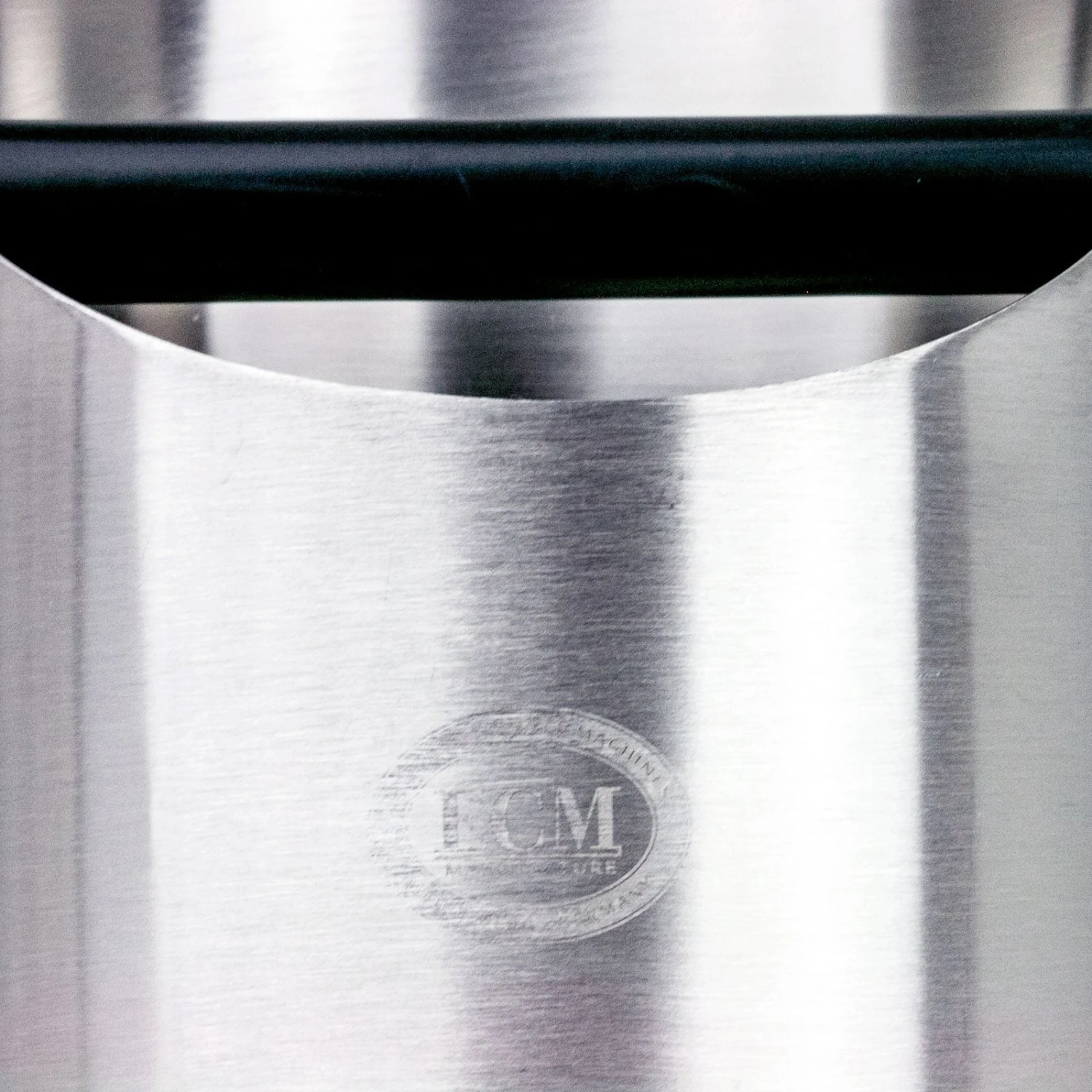 This ECM knock box is made of stainless steel, has an easily removable rubber sleeved bar, and sturdy rubber feet to keep it in place.